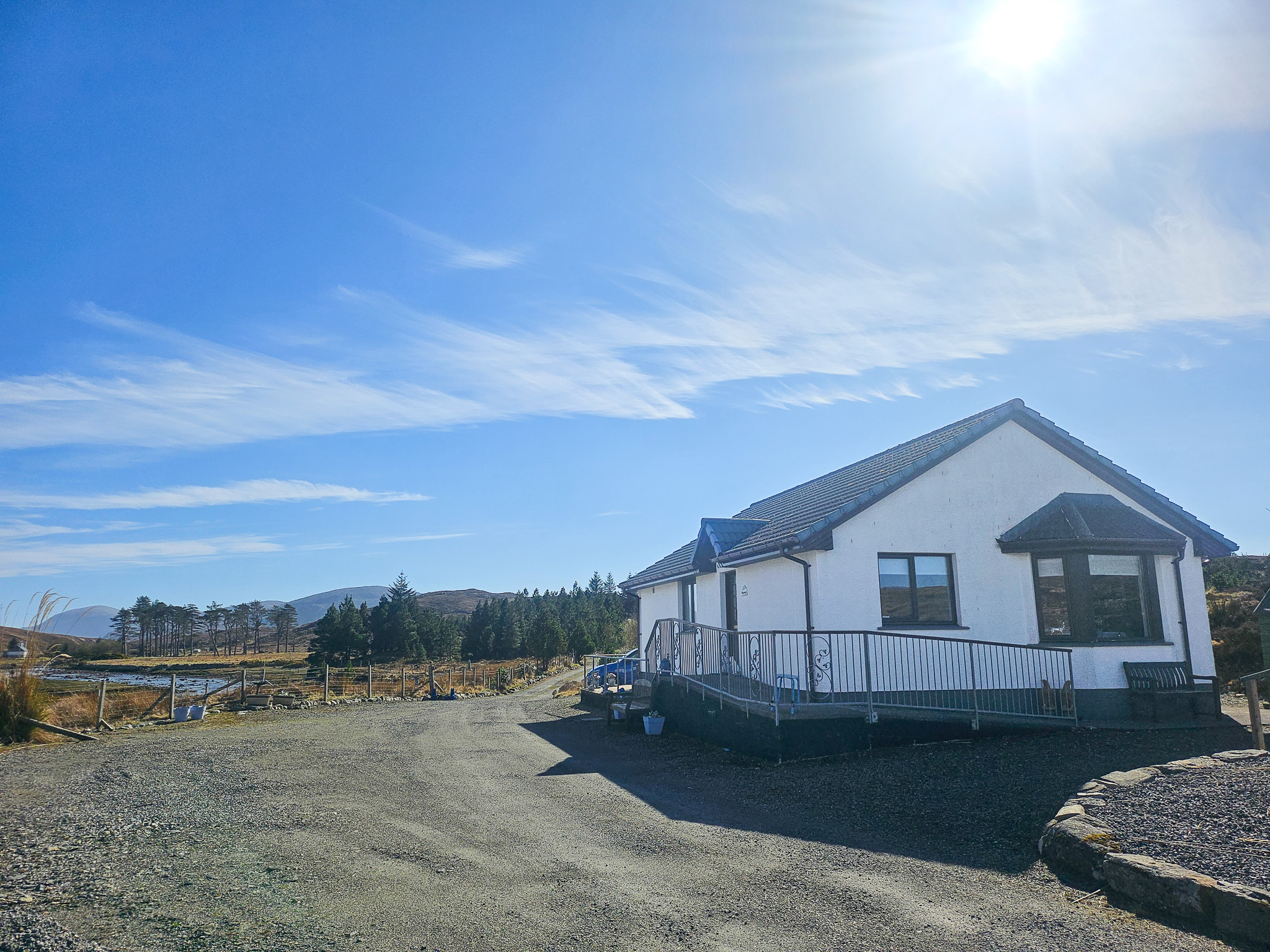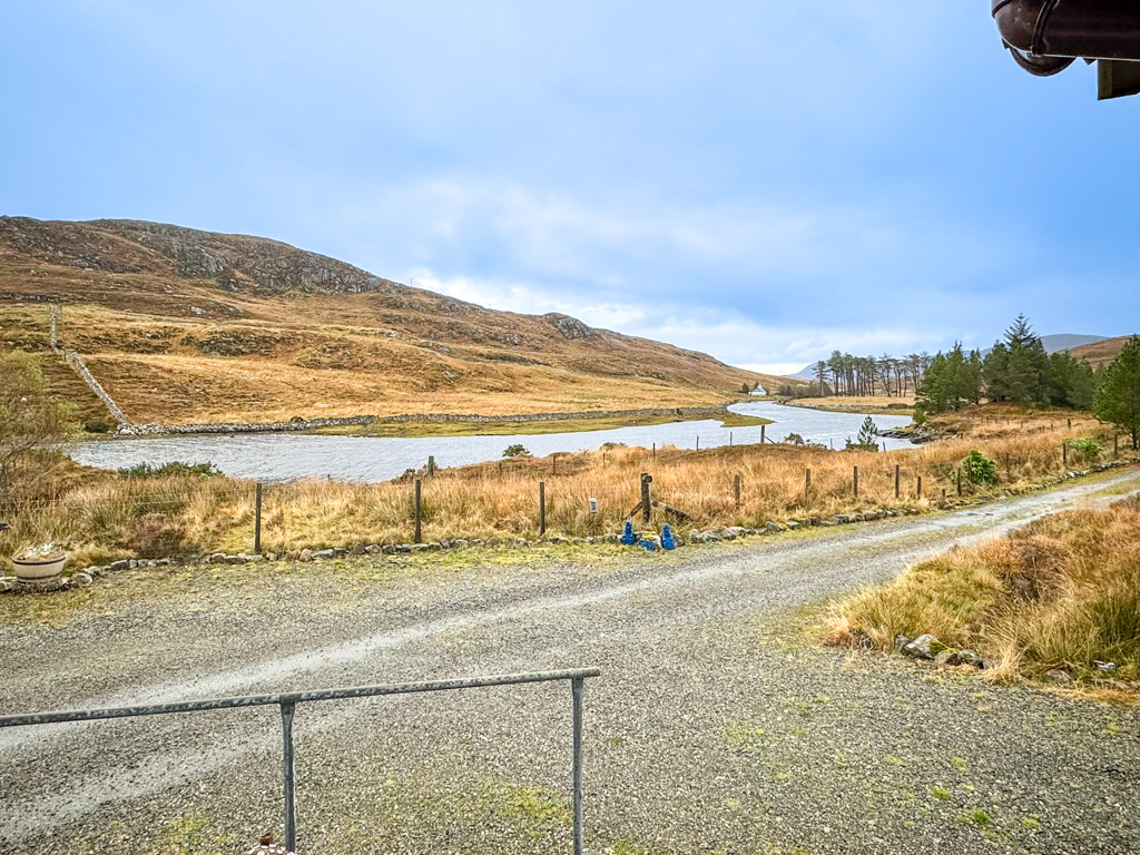 The property is accessed from the main road via a cattle grid, leading onto a gravel driveway shared with neighbouring homes. There is ample off-road parking available on site.