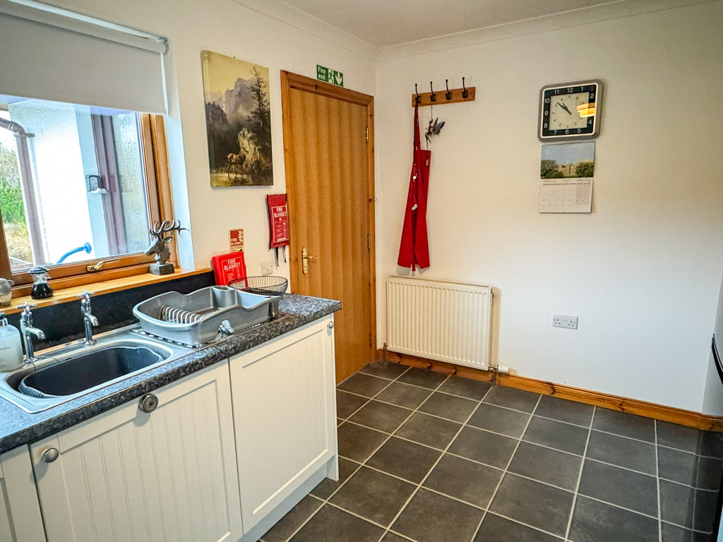 Vinyl flooring. Window to rear. Room for white goods. Central heating boiler. Access to kitchen via wooden door with glazed panels.