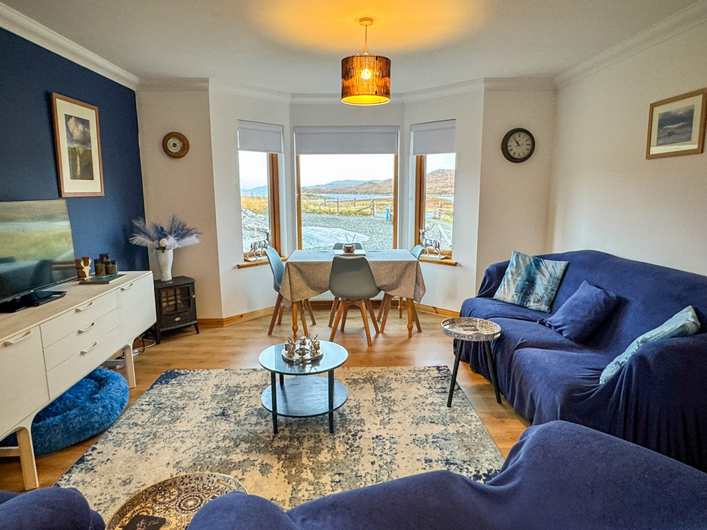 Set on a generous plot, the property enjoys a raised rear garden and drying area, along with a large gravelled area to the front which Is an ideal spot to relax and take in the outstanding surrounding scenery.