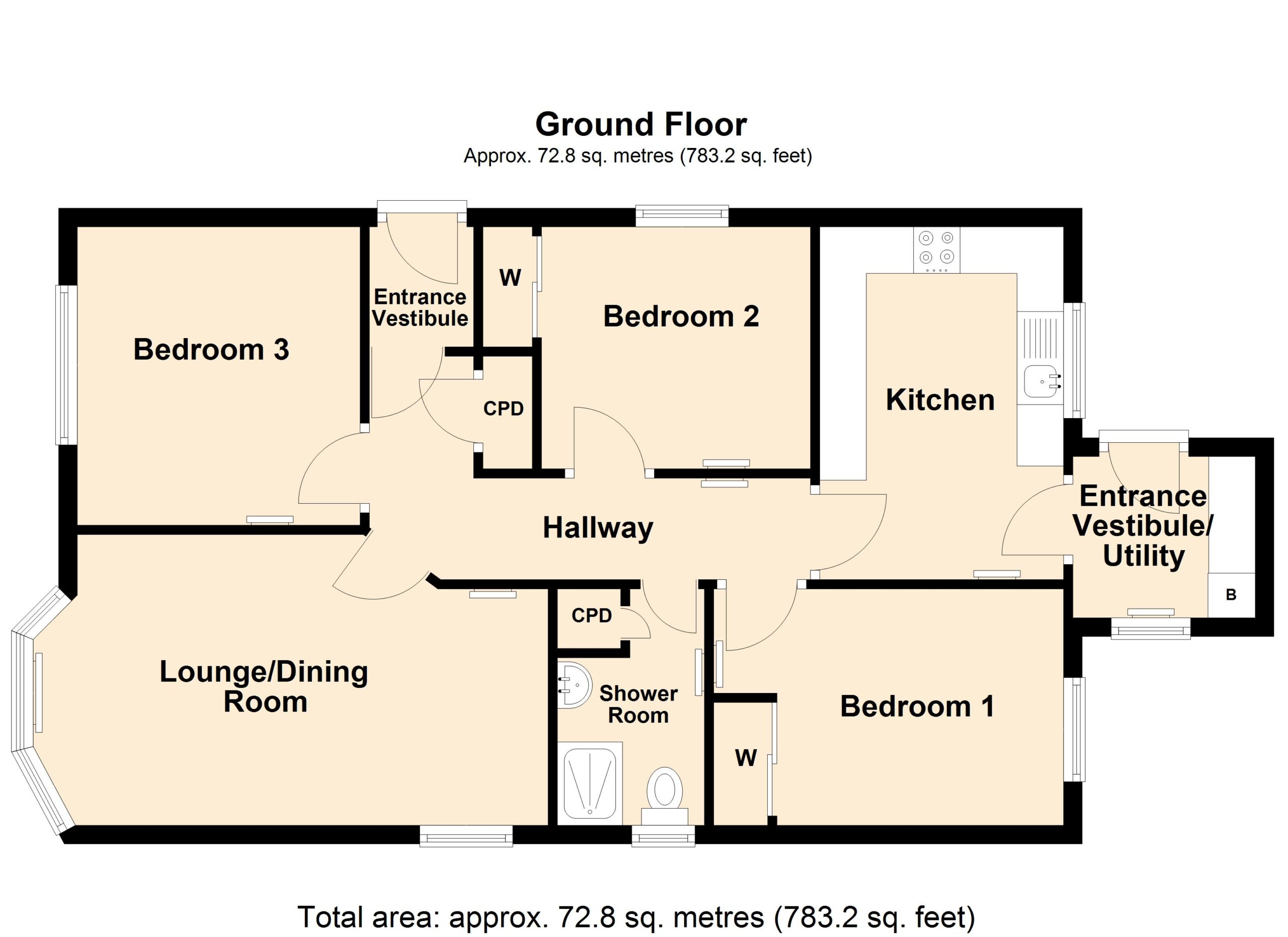 Internally, the well-laid-out accommodation is entered through a UPVC door into the entrance vestibule, which leads to the well-equipped kitchen, hallway, lounge and dining room, three double bedrooms, a front entrance vestibule, and a shower room. The property benefits from a generous amount of fitted storage throughout.